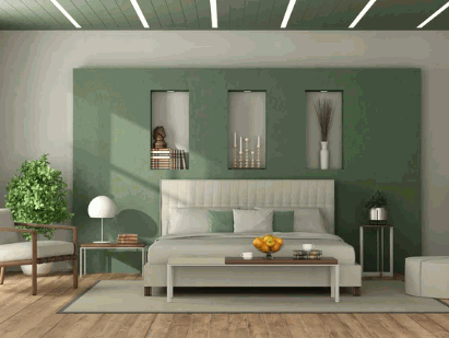 • Soothing shades like blue or green can create a tranquil setting, encouraging rest and quality sleep.