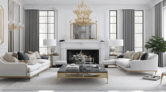 6. Formal lighting fixtures: Chandeliers, wall sconces, and table lamps with elaborate designs.